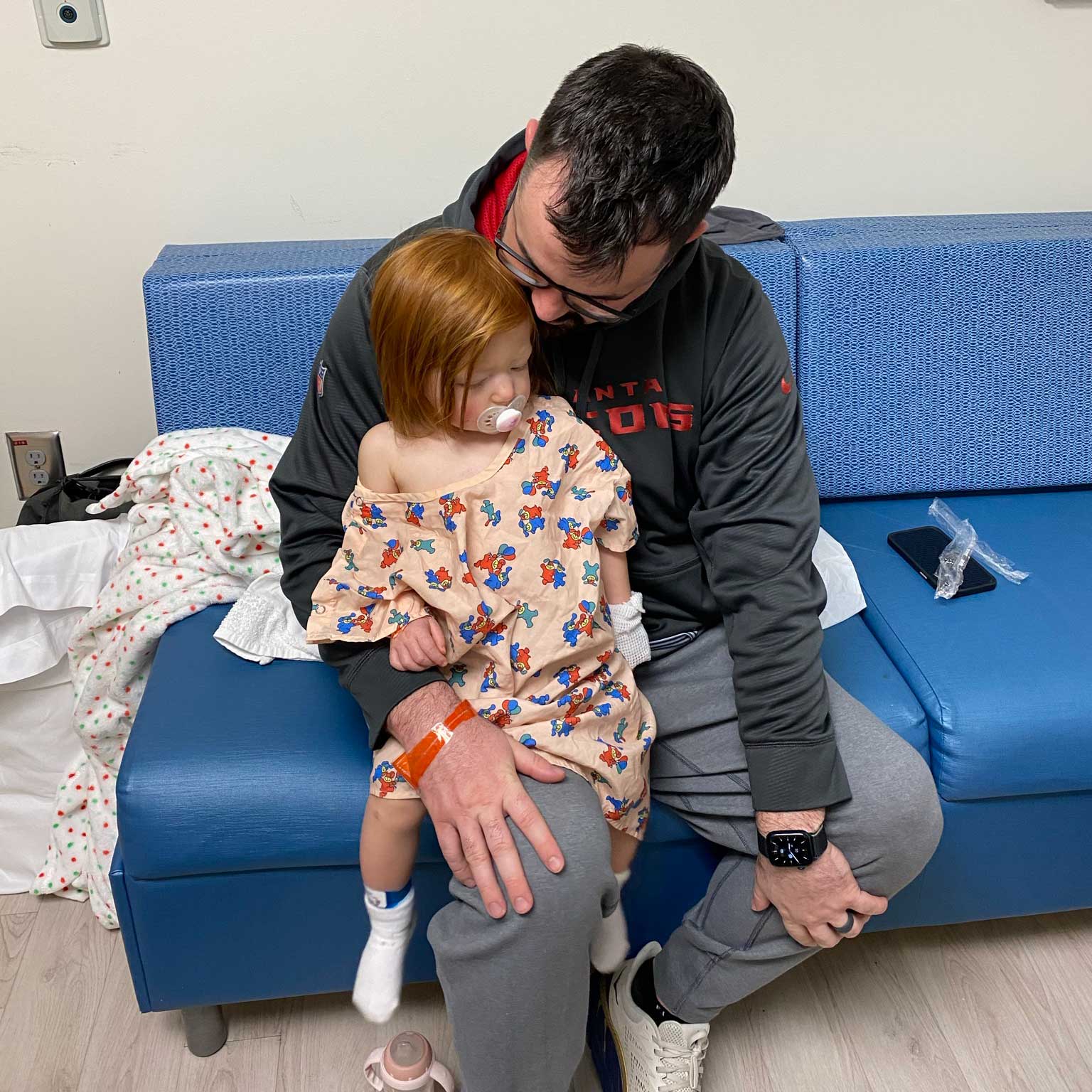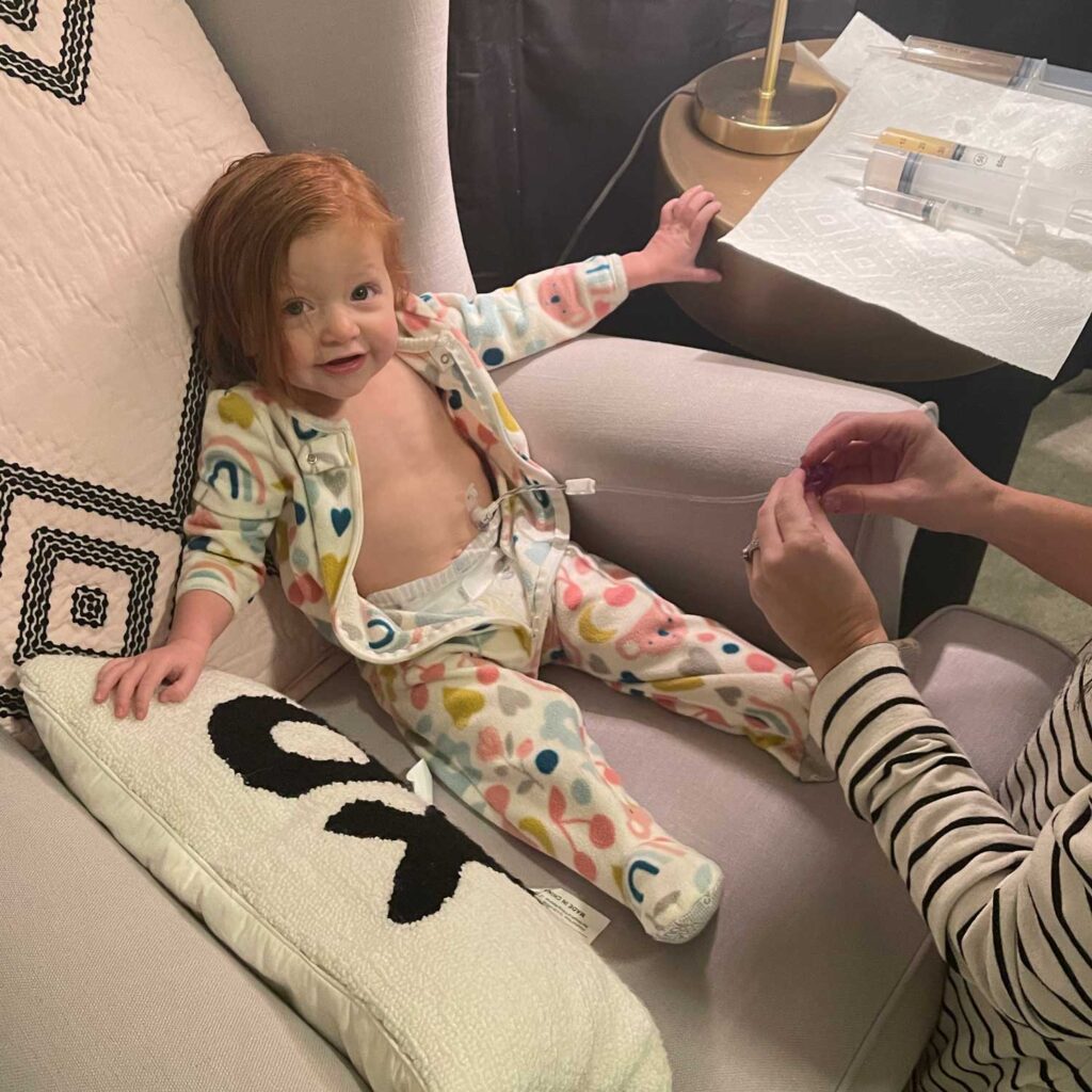 After additional bloodwork, we received confirmation right after Christmas in 2020 – “Collins has Cystinosis.” Those three words changed our lives forever. We would quickly learn that this progressive disease eventually spreads to damage every organ in the body. So far, Collins’ kidneys and eyes are the only organs affected. We feel lucky that Cystinosis does have a treatment to slow the progression, although it’s side effects can be harsh. In January she underwent surgery to place a gastrostomy tube in her belly. We use this to administer her meds, as they have a terrible taste and odor so taking them orally is very difficult at her age. Collins’ days include morning vomiting, strict medicine and eating schedules, and eye drops. She has blood drawn frequently to monitor her levels and adjust the amount of medicine to keep her levels safe.