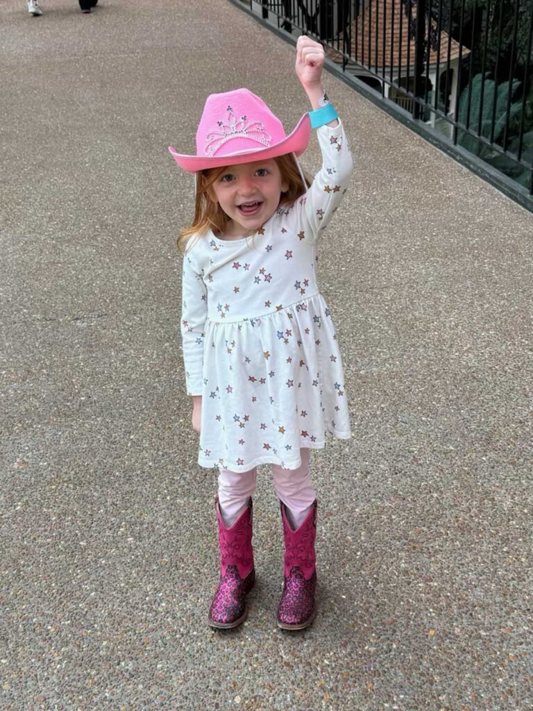 Collins was always petite compared to her older sister but remained on the growth charts and got great reports at her checkups. Around 12 months we began noticing that she LOVED water. We thought this was great; water is so healthy. But after a few months it began to make us wonder…why is she so thirsty? We called our pediatrician and they had us come in that day. A finger prick and urine sample showed that her blood sugar looked normal, but they did notice glucose in her urine. They immediately sent us to Scottish Rite Hospital for more testing. After collecting additional bloodwork and urine samples they felt confident she did not have the common form of diabetes. They sent us home to follow up with an Endocrinologist. After weeks of additional bloodwork and a two-night hospital stay (where she was not allowed to drink any water and they drew blood every hour for 12 hours) they concluded she did not have any form of diabetes. However, they did find that her kidneys were leaking important elements that should be re-absorbed. This was when we were first introduced to the word CYSTINOSIS, a rare genetic disease. Nothing was confirmed but the possibility left us feeling completely defeated. How could our healthy baby who just loves water have a genetic disease?